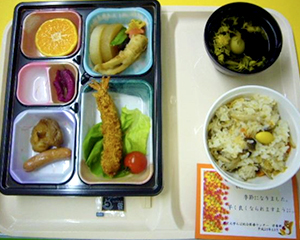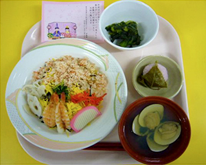 祭り寿司:千葉の房総で有名な祭り寿司。普通食、妊産婦食を召しあがっている患者さんは、選択メニューでお選びいただけます。