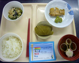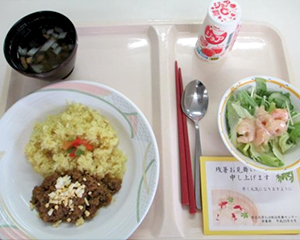 祭り寿司:千葉の房総で有名な祭り寿司。普通食、妊産婦食を召しあがっている患者さんは、選択メニューでお選びいただけます。