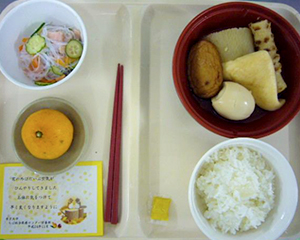 - 春夏秋冬に応じたメニューの他に、毎月1回、季節に合わせた行事食を全食種にお出ししています(3分・流動食は一部のみ)。