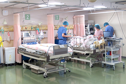 新生児から15歳までの小児と、主に糖尿病などの内分泌疾患を抱える成人患者が入院する混合病棟です。小児科では、外科的処置を必要とする患児以外にも呼吸器、消化器、感染症、血液、内分泌など多くの疾患に対応しており、様々な成長発達段階にある患児の受け入れを行っています。恐怖や不安な入院生活を、子供たちが安心して治療ができるように両親も含めた関わりを行っています。成人では主に糖尿病患者が入院するため、患者への疾患に対する教育や指導を中心に実施しています。