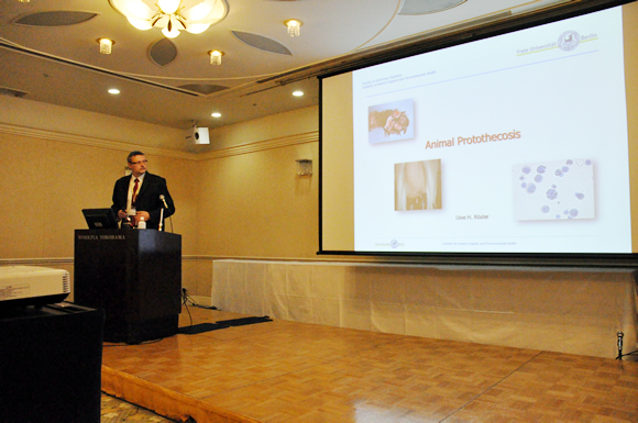 The joint symposium held a successful symposium on animal mycosis and protothecosis to understand pathogenic, diagnosis and prevention of these diseases. Moreover, the symposium was introduced for epidemiology and enviroments for animal mycosis and prototechosis. This symposium enlightened the attendance on the recent worldwide problem of these infectious disease.