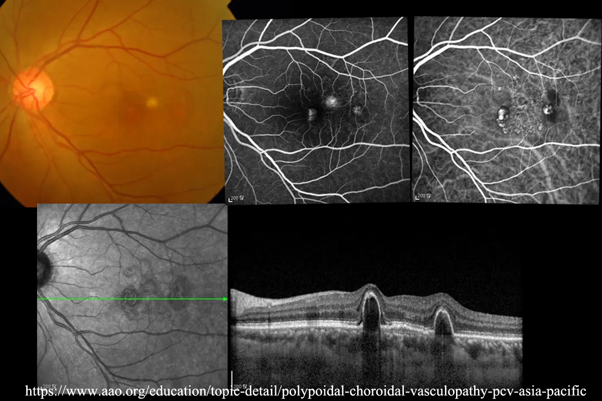 ※ 下方ぶどう腫や網膜色素線条に合併する脈絡膜新生血管にPCV型が多く,二次性PCVとも呼ばれている.